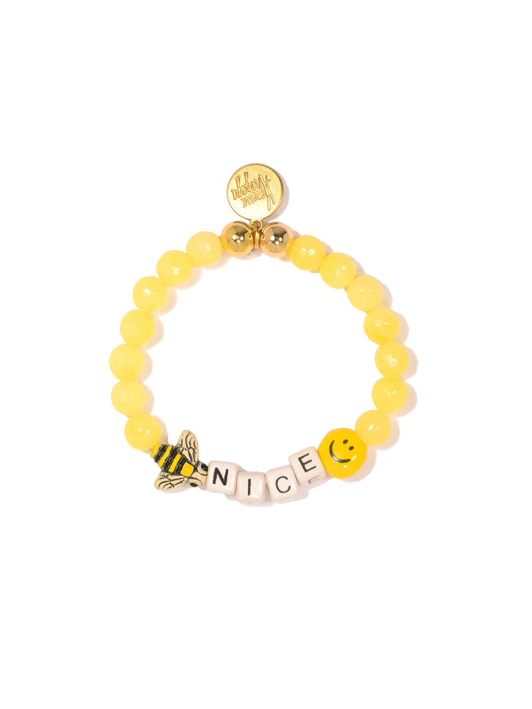 Spread sweet vibes with the Bee Nice Bracelet. Yellow jade beads meet a cheerful ceramic bee charm for a colorful, fun bracelet that reminds you (and everyone around you) to be kind.
