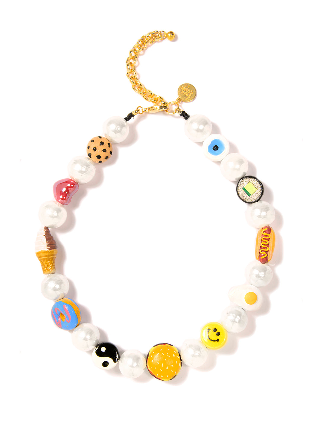Embrace your love for food, fun, and life with our Eat, Play, Love Necklace. Adorned with shell pearl charms including a smiley, yin yang, heart, donut, and burger, this necklace is a playful reminder to enjoy the delicious journey of it all!