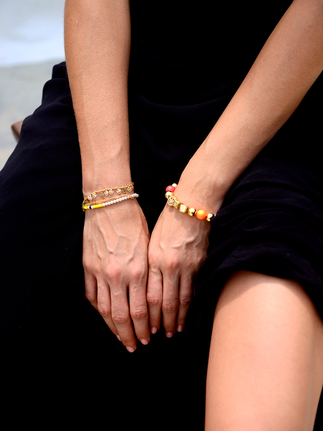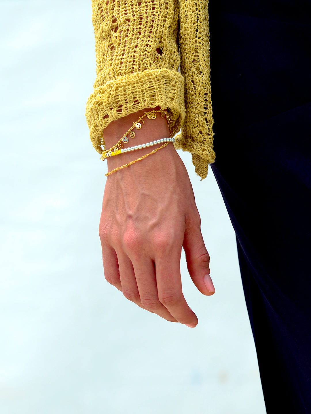 Keep it cheerful with the Good Vibes Only Bracelet! Featuring adjustable black threadwork and a convenient drawstring closure, this layered piece offers a perfect fit every time. Pearl charms and a playful smiley faces sparkle along multi-layer chains, making it the perfect, happy-go-lucky look.