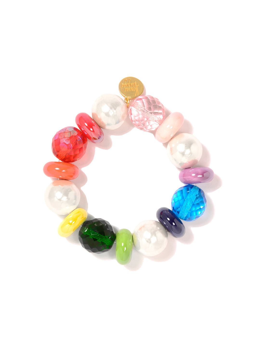 Express your colorful personality with our Paint a Rainbow Bracelet! Adorned with shell pearls, glass charms, and ceramic charms, this piece is sure to brighten up any outfit.