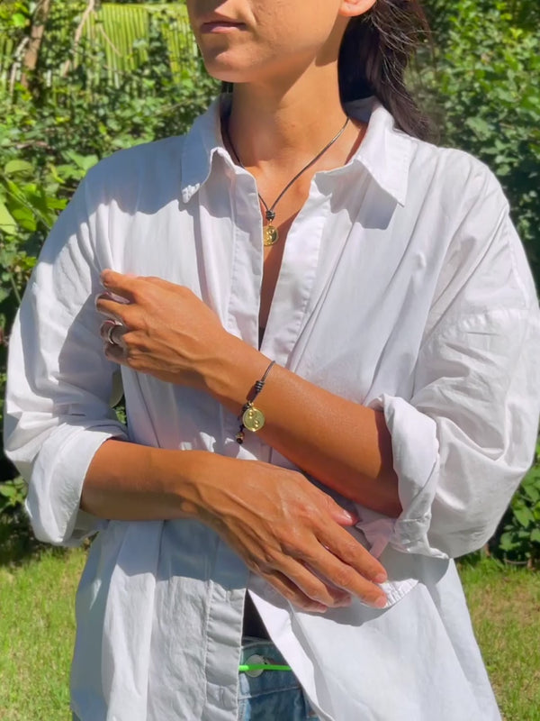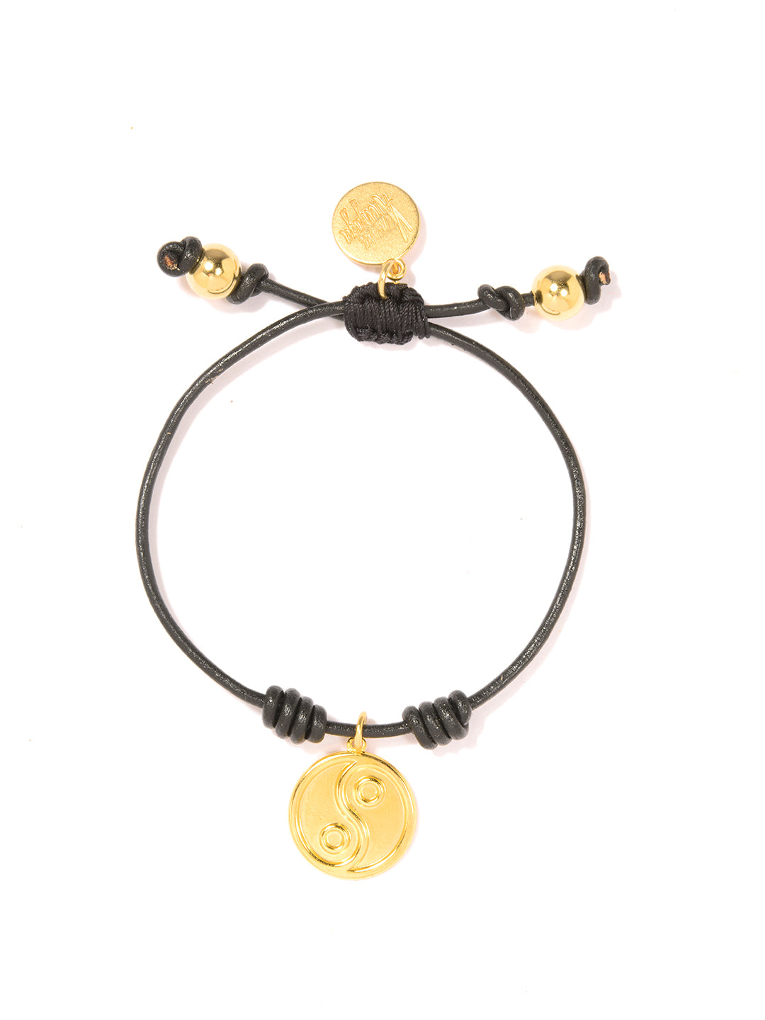 Our Yin Yang Leather Bracelet features a black leather cord and adjustable drawstring closure adorned with a metal yin yang charm. Perfect for layering, this bracelet will add a touch of balance to any outfit.