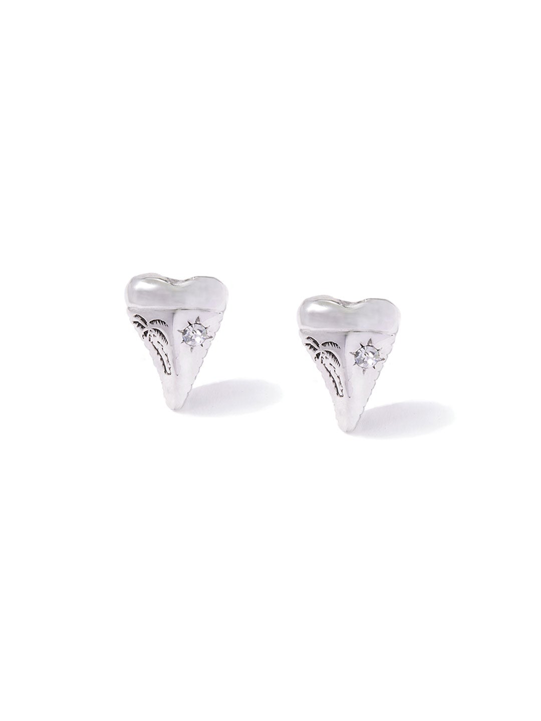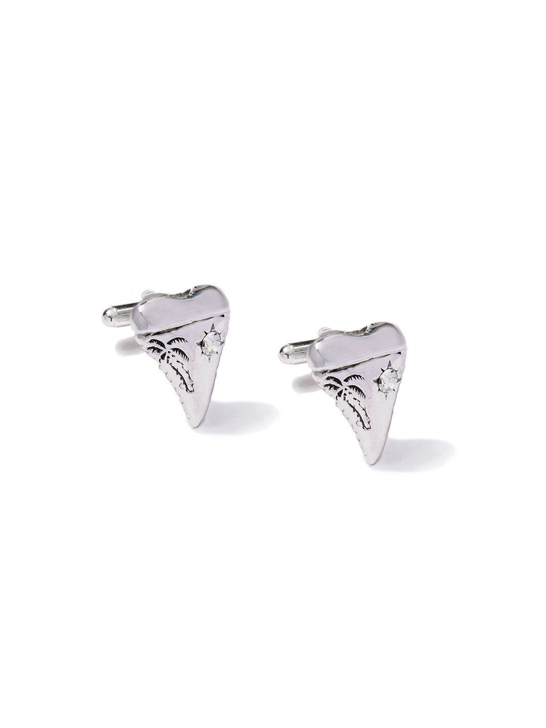0.6" x 0.9" Plated brass shark's tooth cuff links with crystal stone