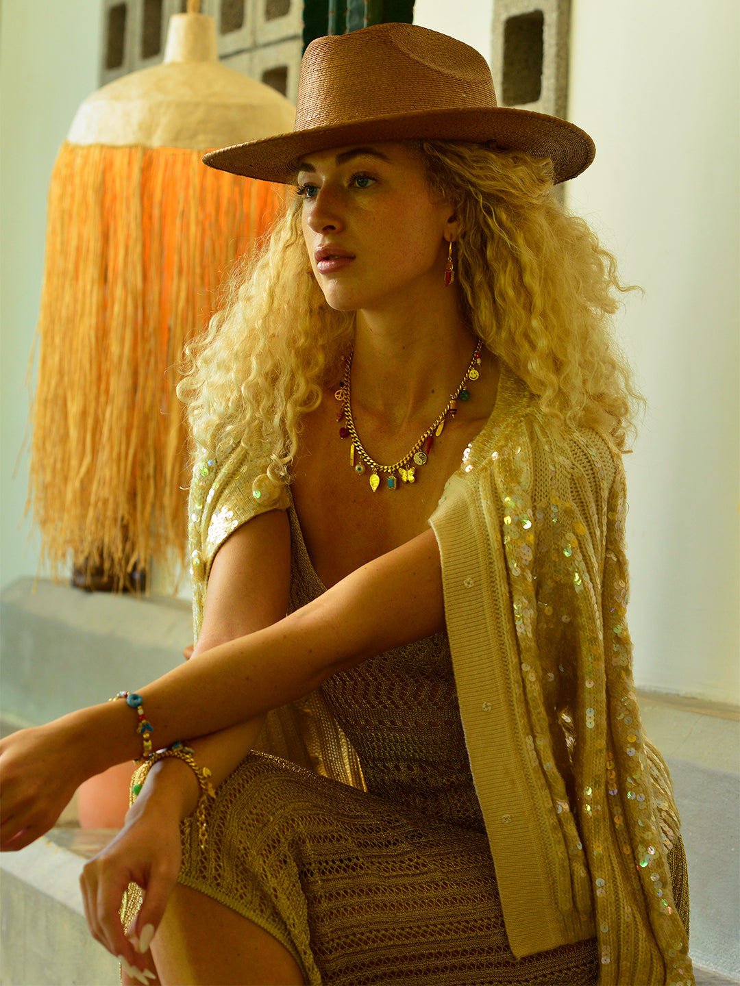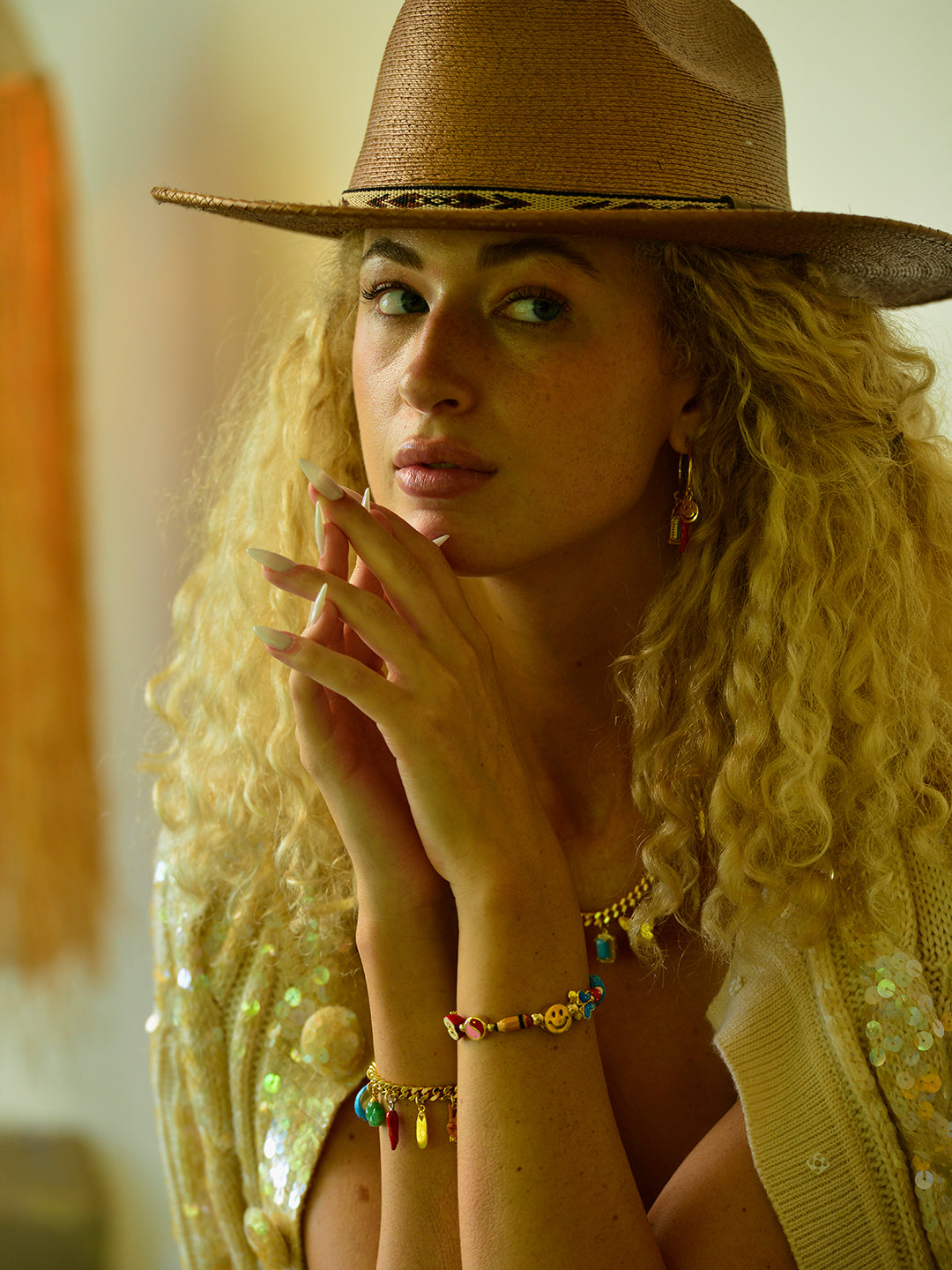 Brighten up your day with our Color Me Once bracelet! This beaded bracelet is scattered with smiles, lipsticks, butterflies, and clovers, all reminders of good times and good vibes.