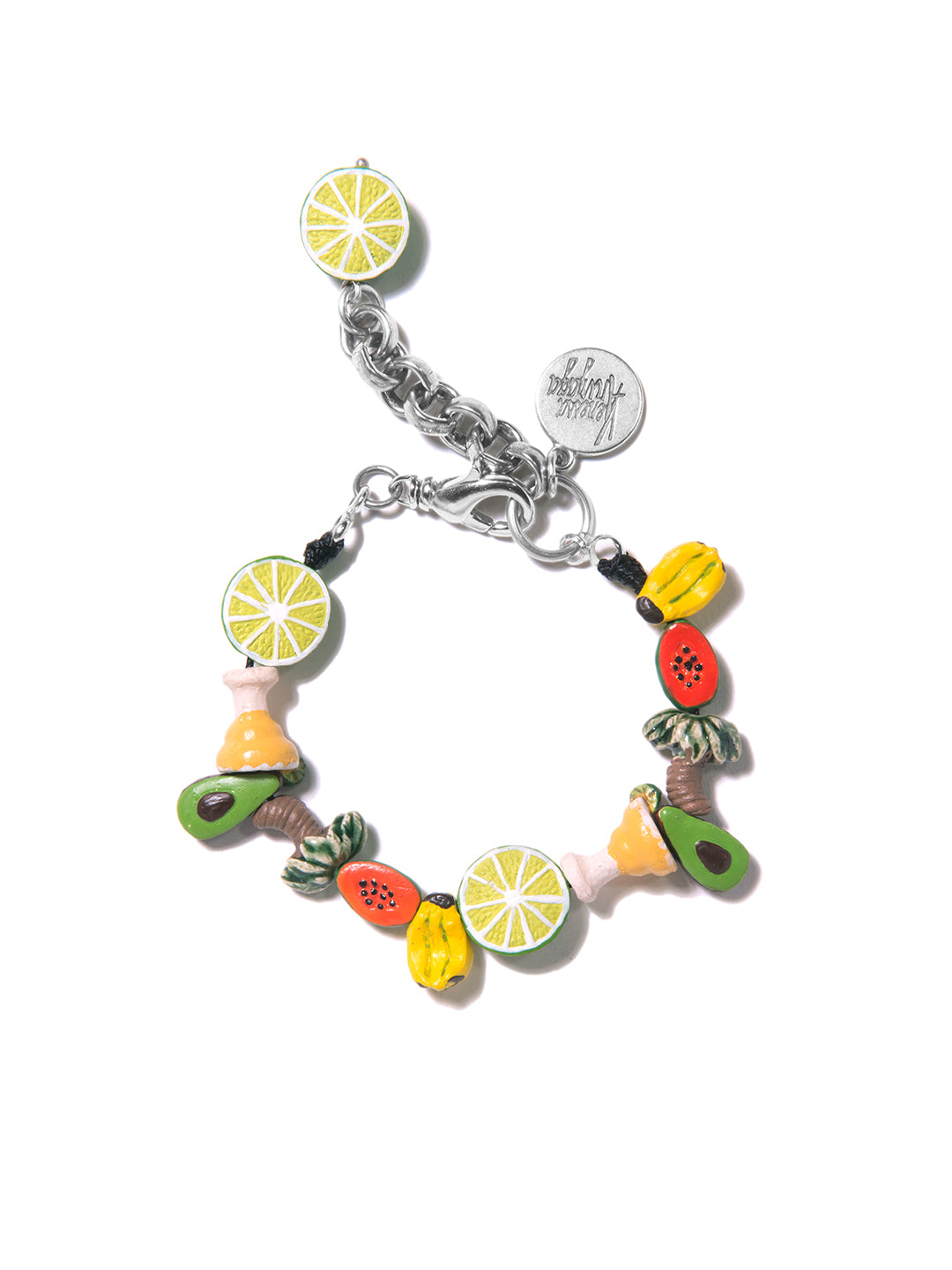 The Cutie Fruity Bracelet is a playful celebration of tropical charm, featuring ceramic charms shaped like lime, margarita, avocado, palm tree, papaya, and banana. This vibrant bracelet adds a fun, fruity twist to your look, perfect for brightening any day with a splash of island sunshine.
