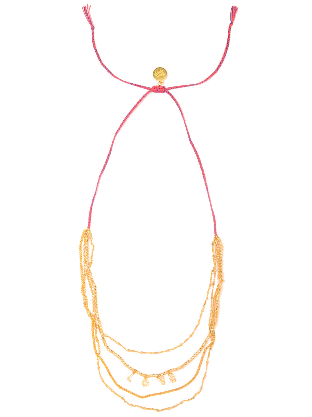 Get layered in love with the Love Club Necklace! Adjustable threadwork and a drawstring closure make for a perfect fit every time. Sparkling playful charms spelling "LOVE" dangle along multi-layer chains—wear it long or as a choker and let your stylefall head over heels.