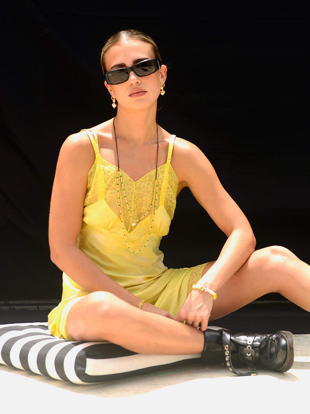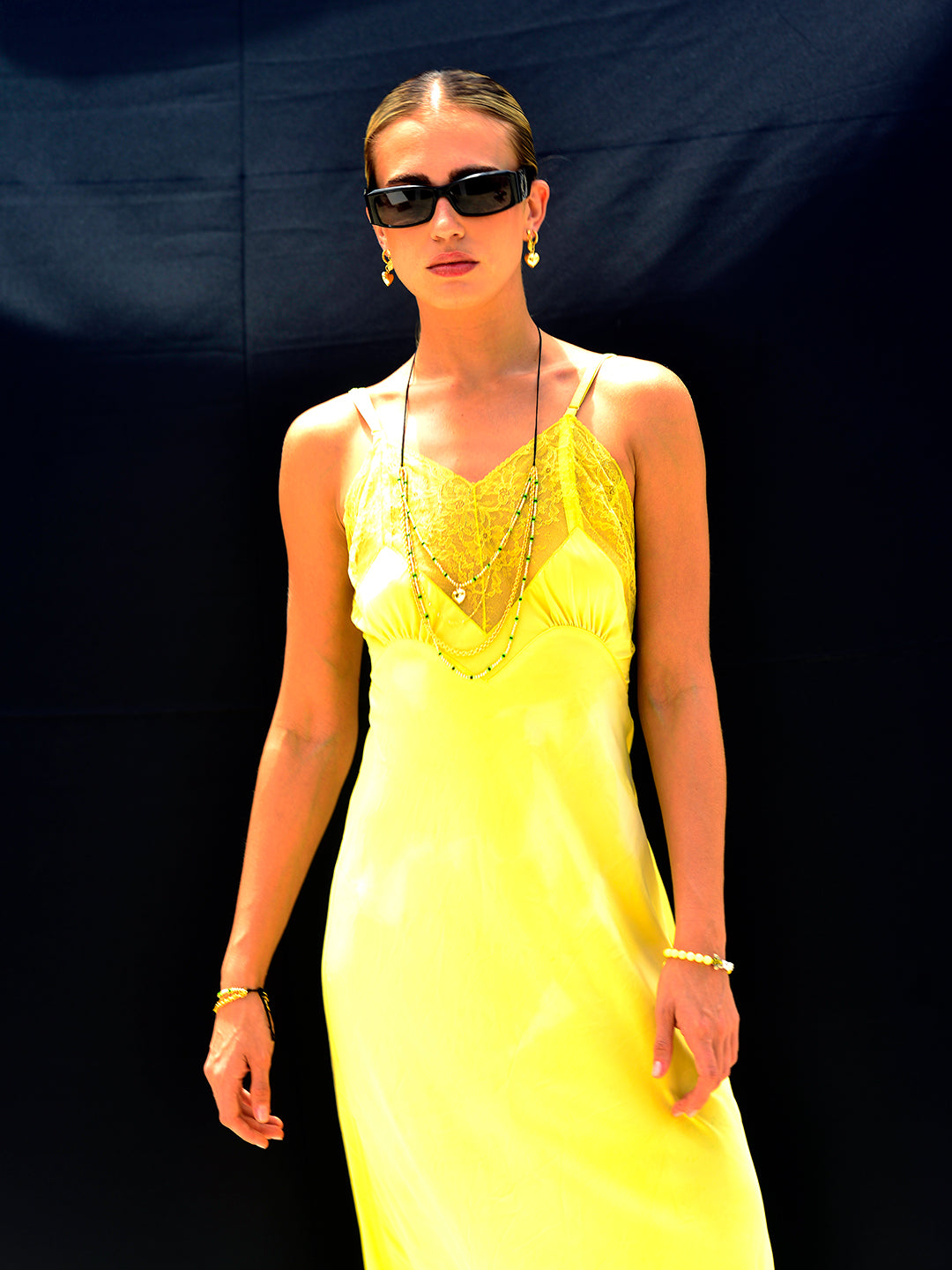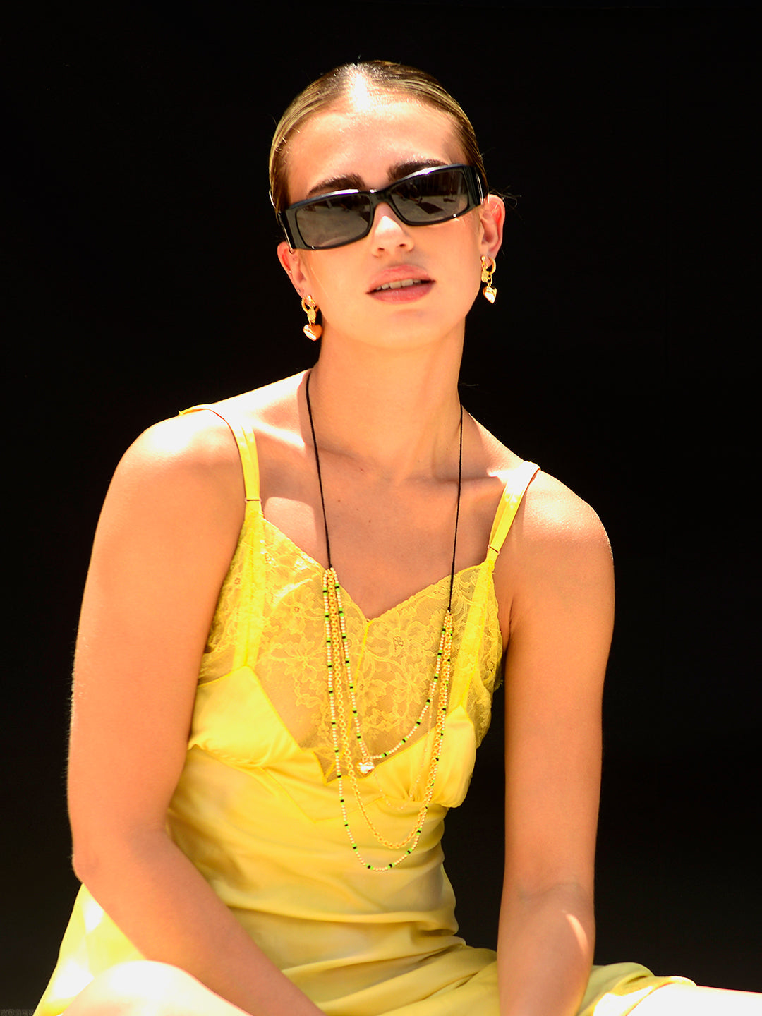 Add a touch of mystery with the Midnight Heart Necklace! Featuring adjustable black threadwork and a convenient drawstring closure, this layered piece offers a perfect fit every time. Gold chains shimmer alongsideglass charms and a dangling heart charm, letting you wear it long or as a choker for versatile, moody elegance.