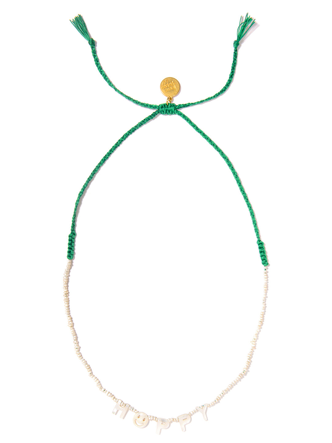 Add some beachy cheer to your look with the Pearly Shores Necklace! Featuring playful green threadwork, lustrous freshwater pearls, and mother of pearl charms with a smiley face, this necklace is sure to make you feel HAPPY.