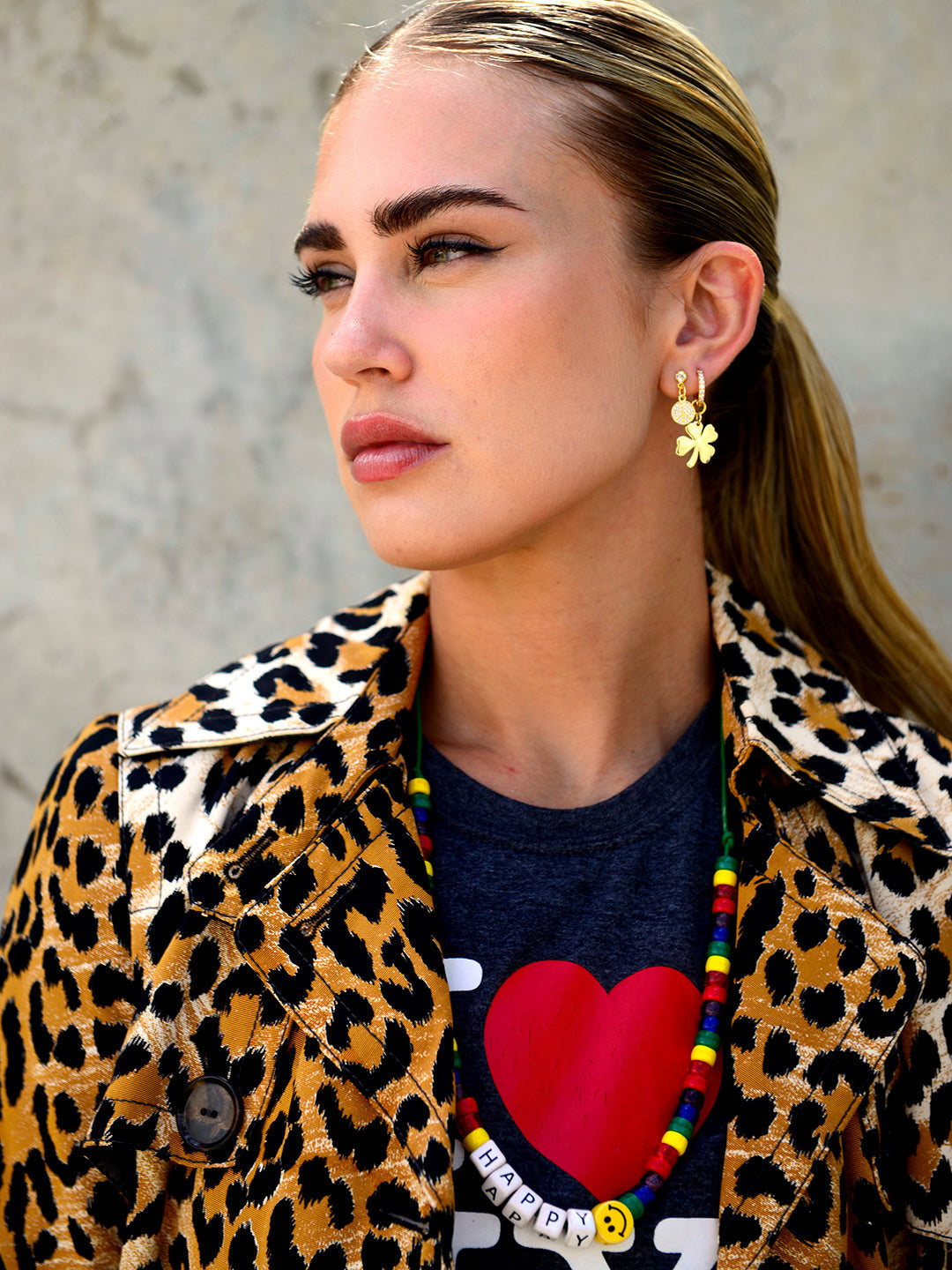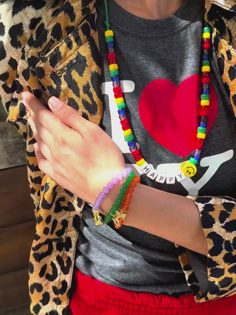 Sweeten up your look with a playful dose of good energy. The Sugar Rush Necklace features a sleek, adjustable green cowhide leather cord strung with glass and ceramic charms. Wear it your way—long and laid-back, or cinched as a choker for instant edge. A versatile piece that channels positivity with every wear, it’s the perfect mix of bold, fun, and effortlessly cool.