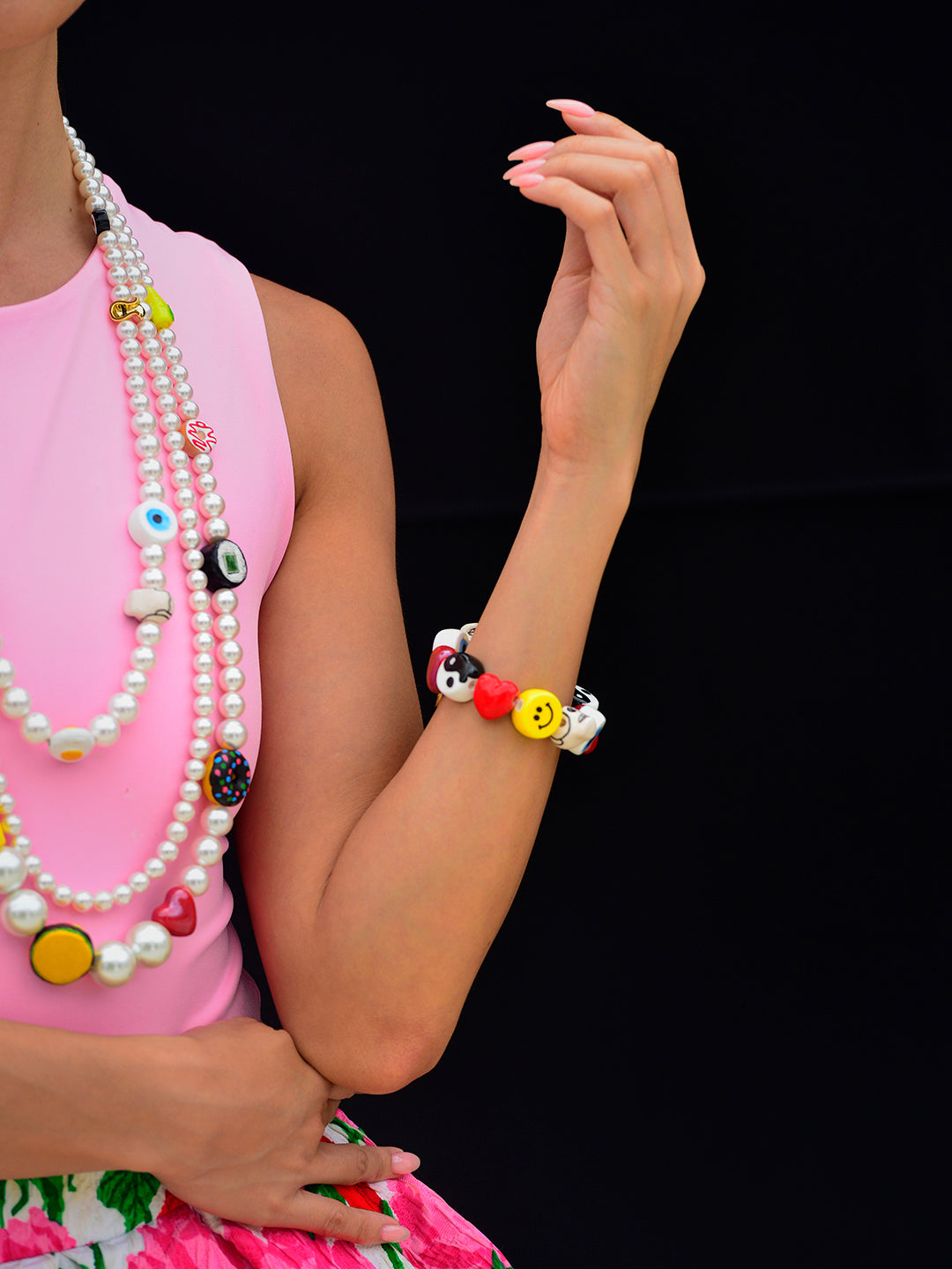 Bring balance, happiness, and good vibes to your look with our Vibe Check Bracelet. Made with iconic ceramic charms, this piece will make sure your mood is always good.